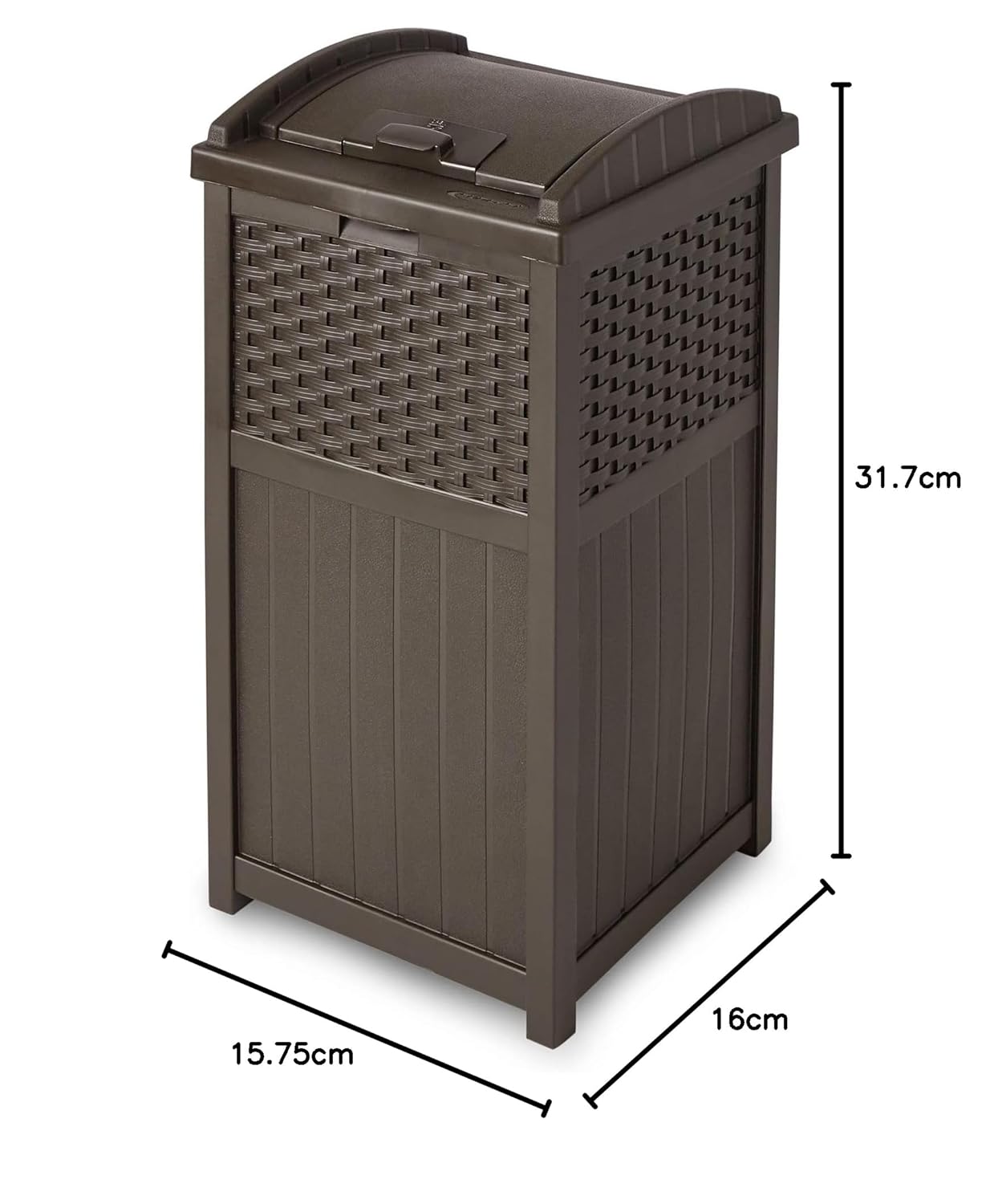 • Outdoor Patio Trash Can: Features a decorative wicker-style design for a stylish addition to your outdoor space; Greatly blends in your garden, backyard, or garage without being unsightly