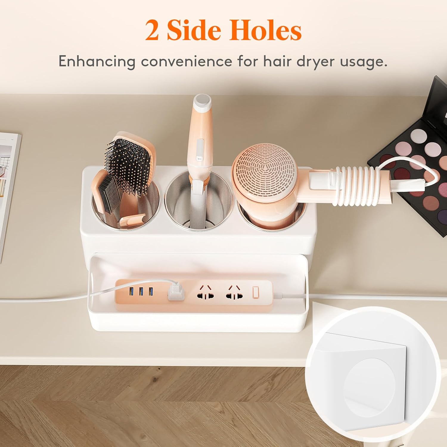 - Convenient to Use: The hot tools organizer features side holes for easy cable management. You can place a multi-outlet power strip inside the box to help organize cords and facilitate the use of hair tools